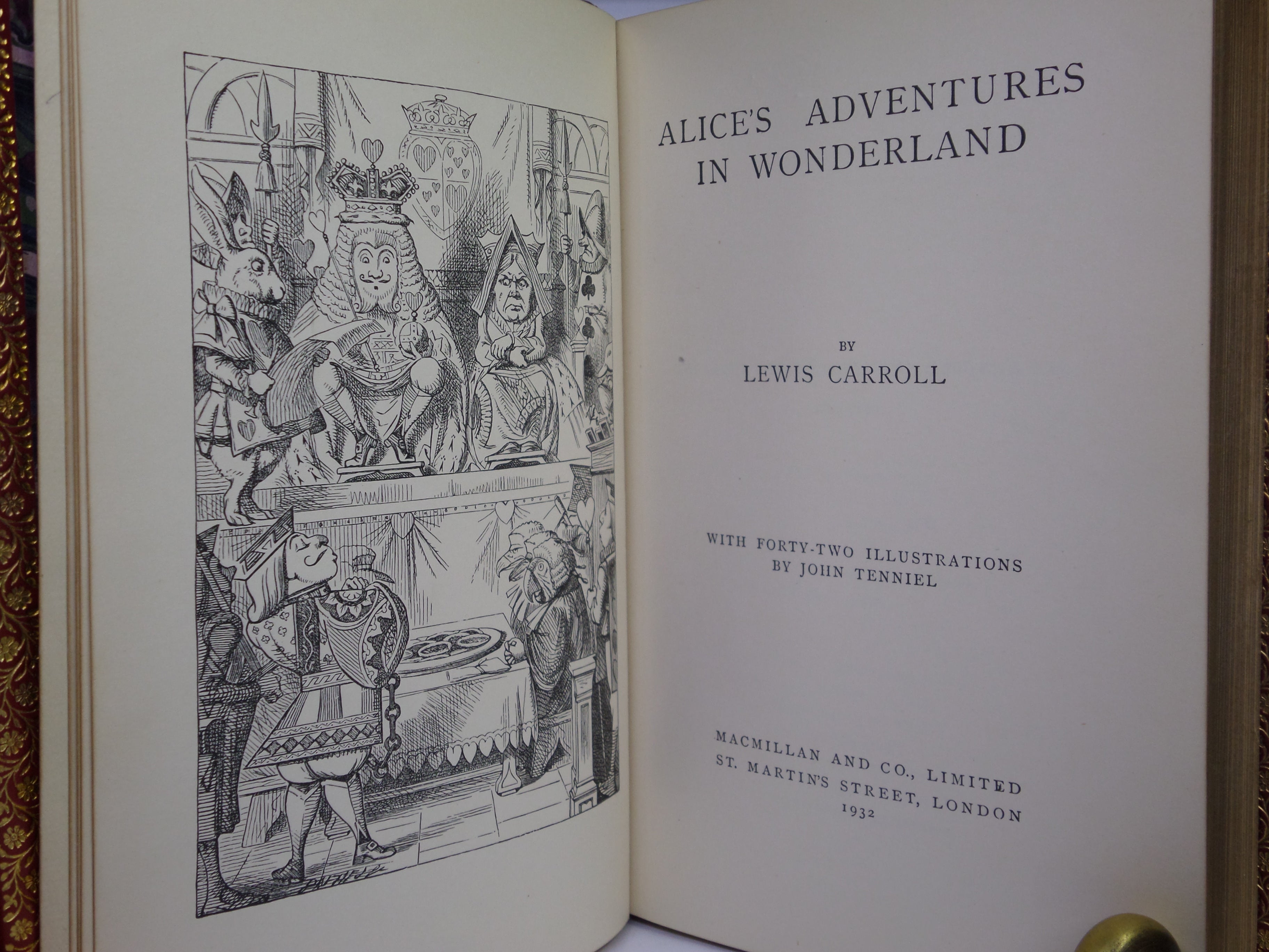 [CARROLL, LEWIS (Dodgson, Rev. Charles Lutwidge)]. Alice's Adventures in Wonderland. With Forty-Two Illustrations by John Tenniel. London: Macmillan and Co., 1932.