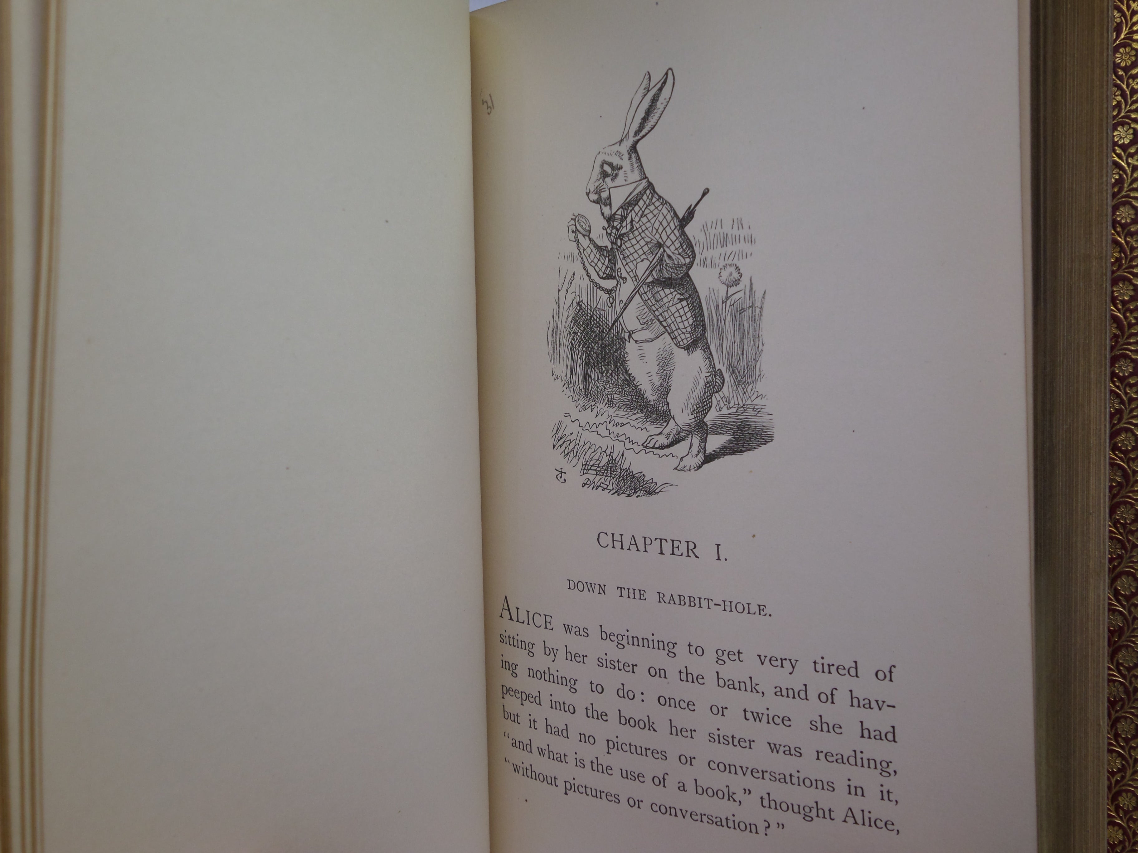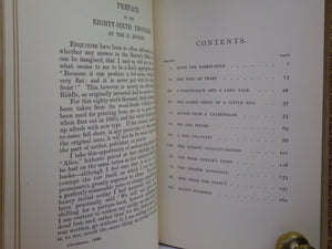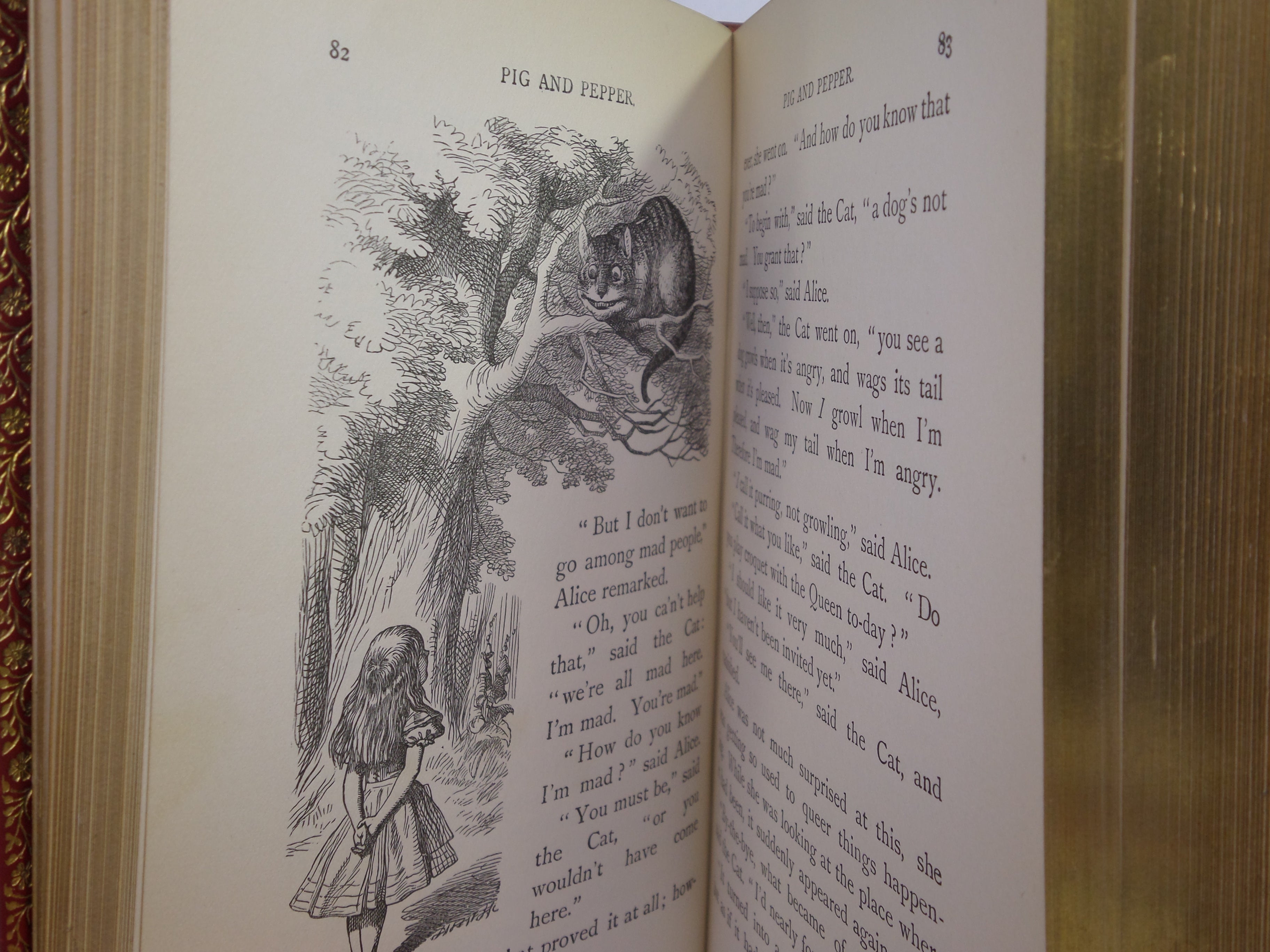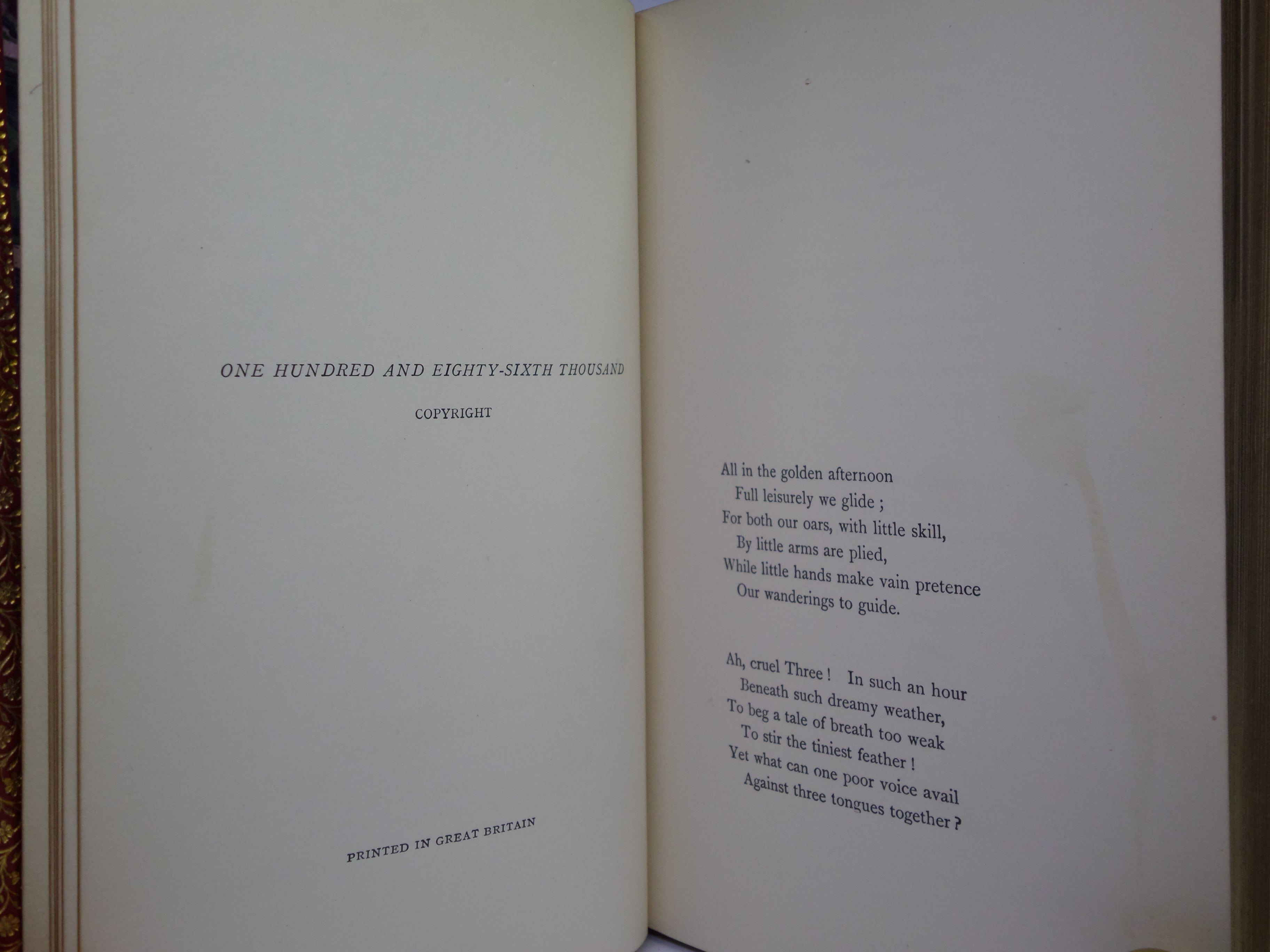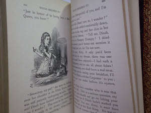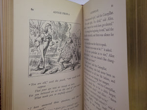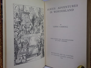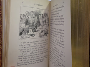 REPRINTS. Leather bound; hardcover; octavo (18.5 x 12 x 3.5 cm); pp. [12], 183, [2] ads, [10], 211. English text. Stunning binding of full red polished calf gilt by Zaehnsdorf; all page edges gilt; marbled endpapers; illustrations throughout by John Tenniel. Printed by Richard Clay. Condition: VERY GOOD. Binding tight and secure with the hinges and joints perfectly intact. Some slight scuff marks to covers. Spine very lightly dulled. Interior fresh, clean and without previous ownership markings.