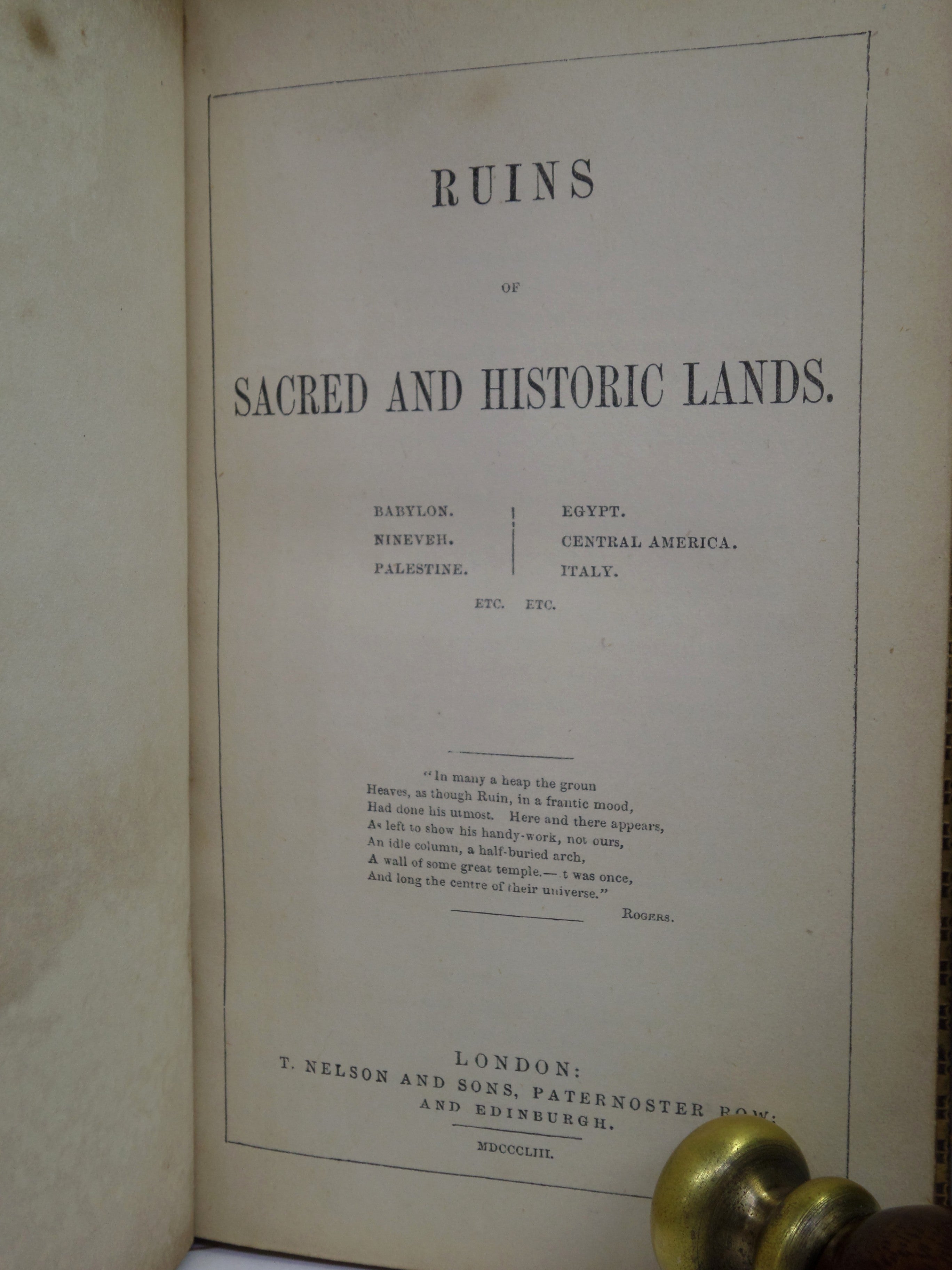 [ANON]. Ruins of Sacred and Historic Lands; Babylon, Nineveh, Palestine, Egypt, Central Africa, Italy, Etc Etc. London: Nelson and Sons, MDCCCLIII. [1853].