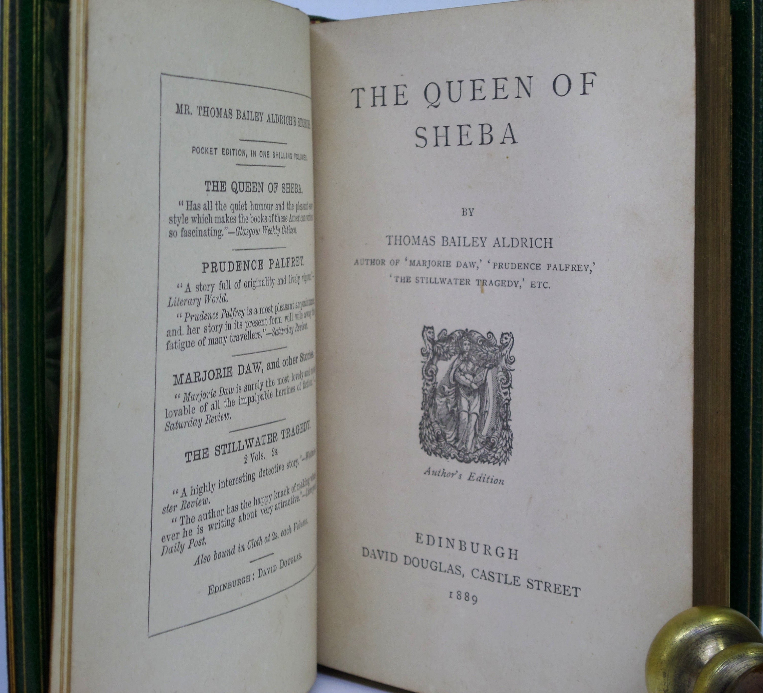 [ALDRICH, THOMAS BAILEY]. The Queen of Sheba. Edinburgh: David Douglas, 1889.